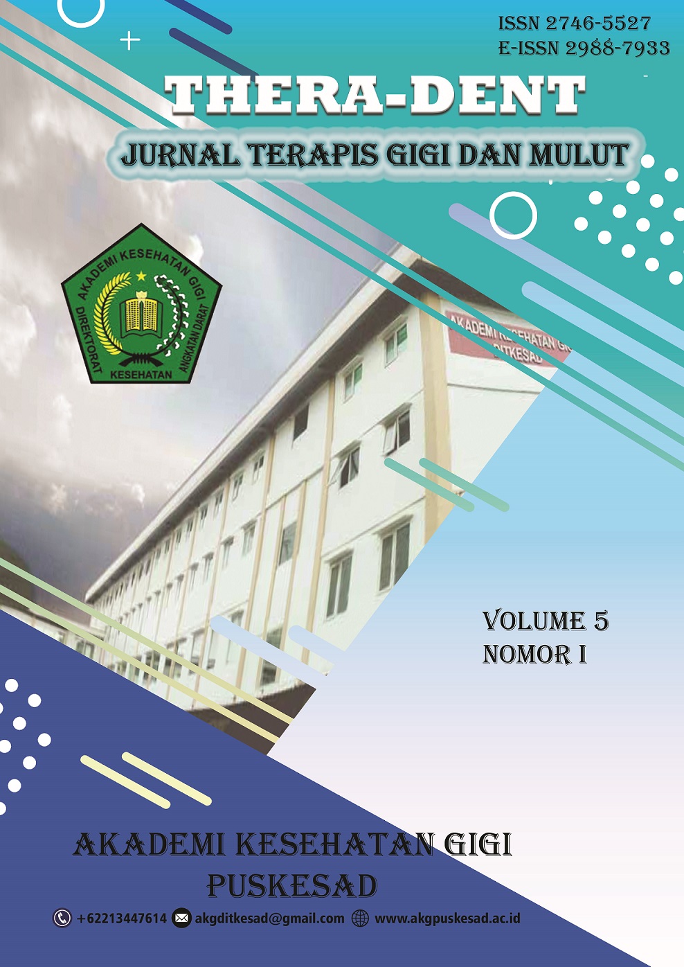 Latar belakang : Kesehatan gigi dan mulut merupakan keadaan sehat dari jaringan keras gigi serta unsur yang berhubungan dengan rongga mulut yang memungkinkan individu makan dan minum. Karies gigi merupakan penyakit jaringan keras gigi yaitu emai, dentin dan sementum yang disebabkan oleh adanya jasad renik dalam karbohidrat Karies gigi dapat dipengaruhi oleh berbagai faktor salah satunya yaitu substrat, waktu dan host. Jeruk nipis merupakan salah satu tanaman yang banyak digunakan masyarakat sebagai ramuan tradisional manfaat air perasaanya dapat sebagai anti bakteri. Tujuan penelitian : Mengetahui pengaruh daya hambat ekstrak kulit jeruk nipis terhadap pertumbuhan bakteri Streptococcus mutans. Metode penelitian : Penelitian yang digunakan adalah dengan metode maserasi yang dilakukan selama 3 x 24 jam. Selanjutnya dilakukan pengujian aktivitas antibakteri ekstrak kulit jeruk nipis terhadap bakteri Streptococcus mutans. Hasil penelitian : Menunjukan bahwa kulit jeruk nipis mempunyai daya hambat dengan rata-rata 8 mm termasuk kedalam kategori sedang. Kesimpulan : Ekstrak kulit jeruk nipis dapat menghambat bakteri Streptococcus mutans penyebab karies gigi, dengan menggunakan etanol 95%.